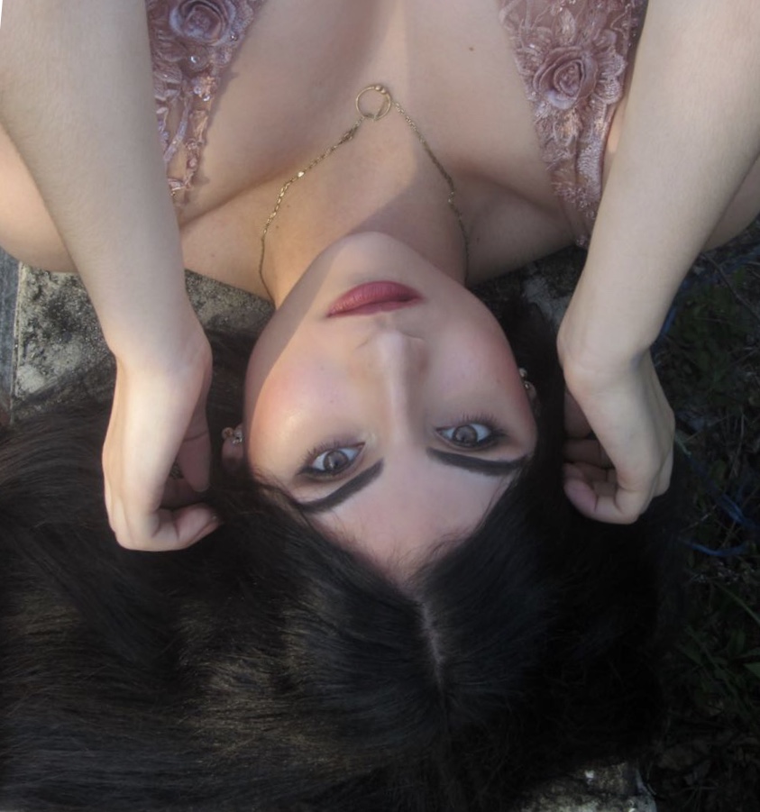 In this photo I am wearing a dress designed by me, rosewood color, with a v-neck on the chest and back, adjusted at the waist and a roundabout skirt, made in a delicate and feminine fabric that I love.